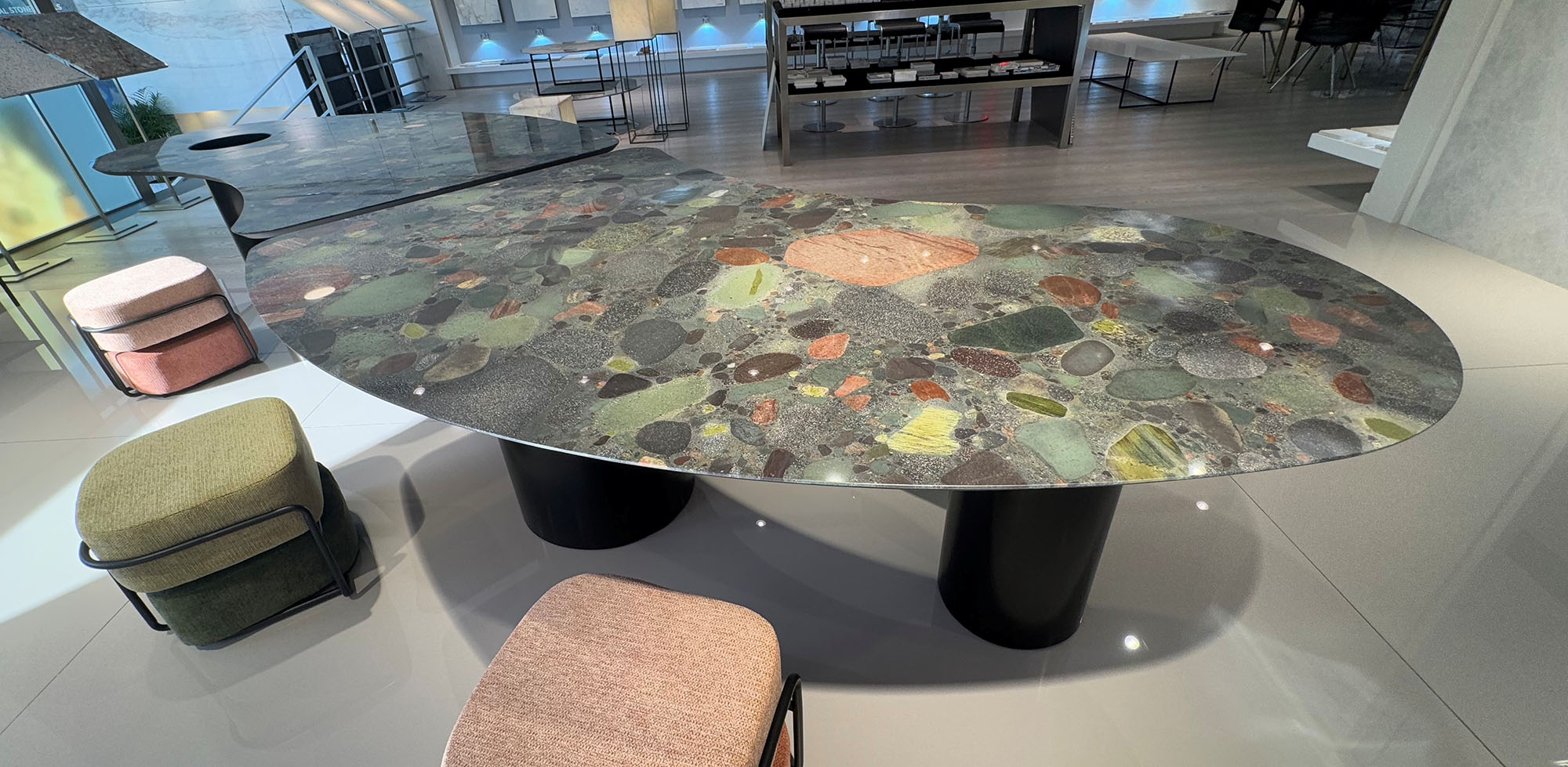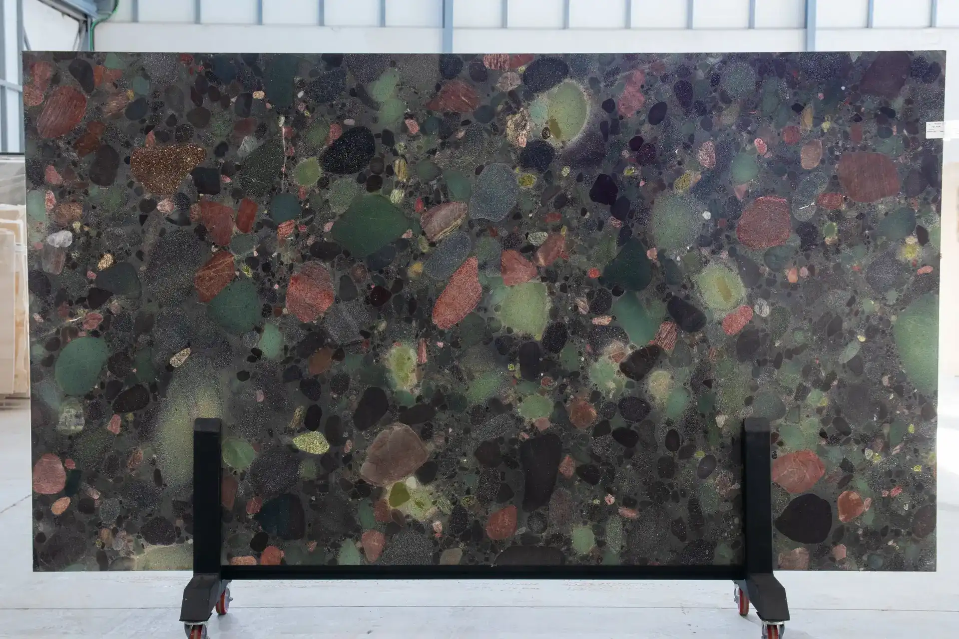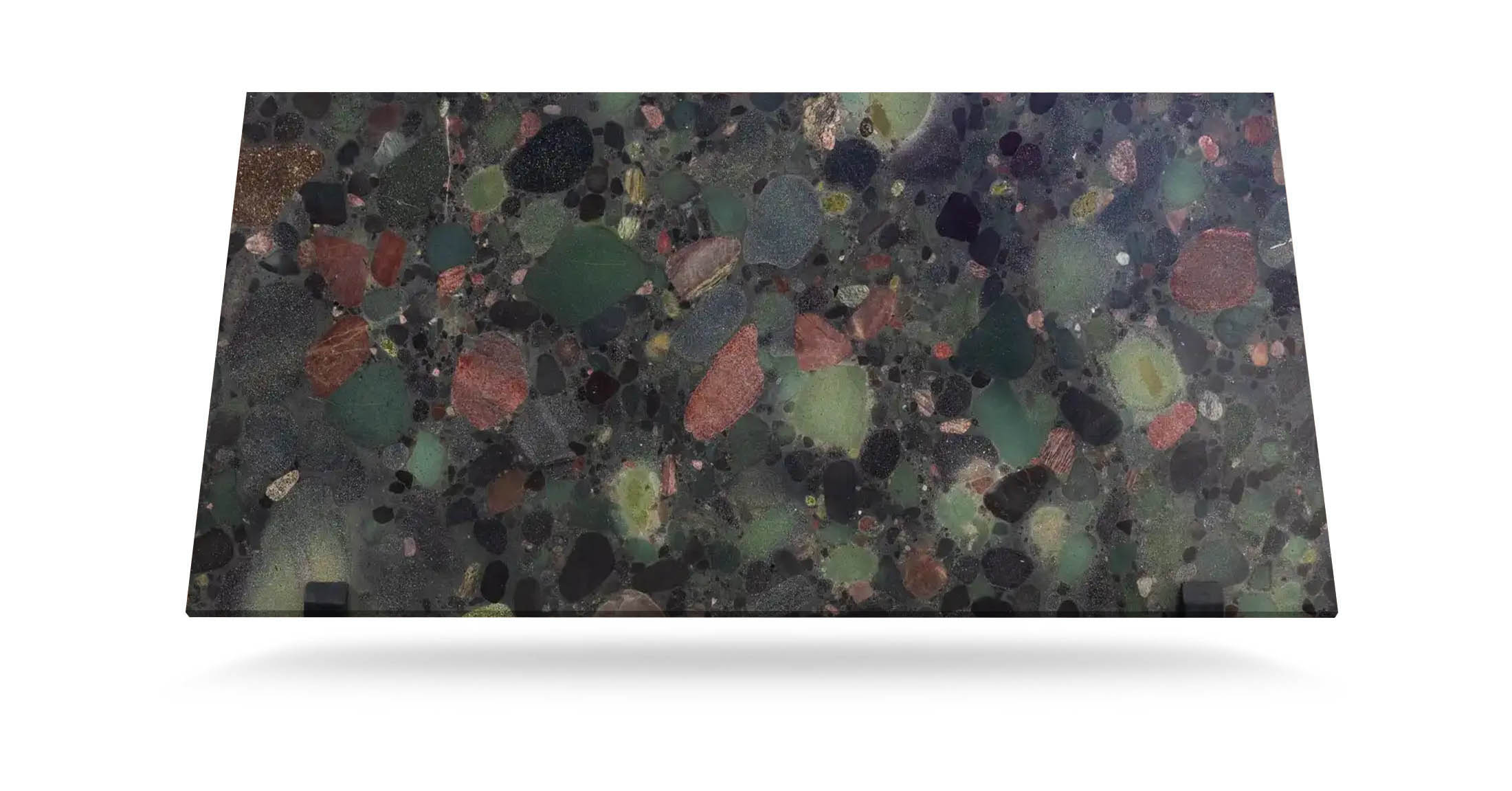 El mármol Four Seasons es una piedra natural que impresiona por su rica combinación de colores, donde los tonos verdes, rojos, negros y ocres se entrelazan de manera espontánea, creando una superficie llena de dinamismo y personalidad. Su apariencia moteada, que recuerda al terrazo, es el resultado de un proceso natural en el que fragmentos de diversas rocas y minerales se consolidan con el paso del tiempo, dando lugar a un material de gran riqueza visual y estructura única.