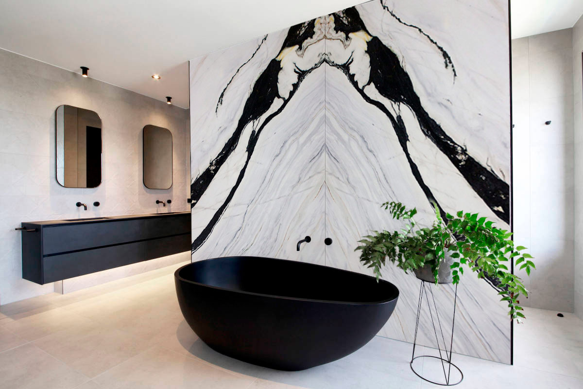 Cada veta negra se compone turmalina y grafito, y se convierte en la protagonista de la estancia gracias a su forma de trazo ancho y definido.
