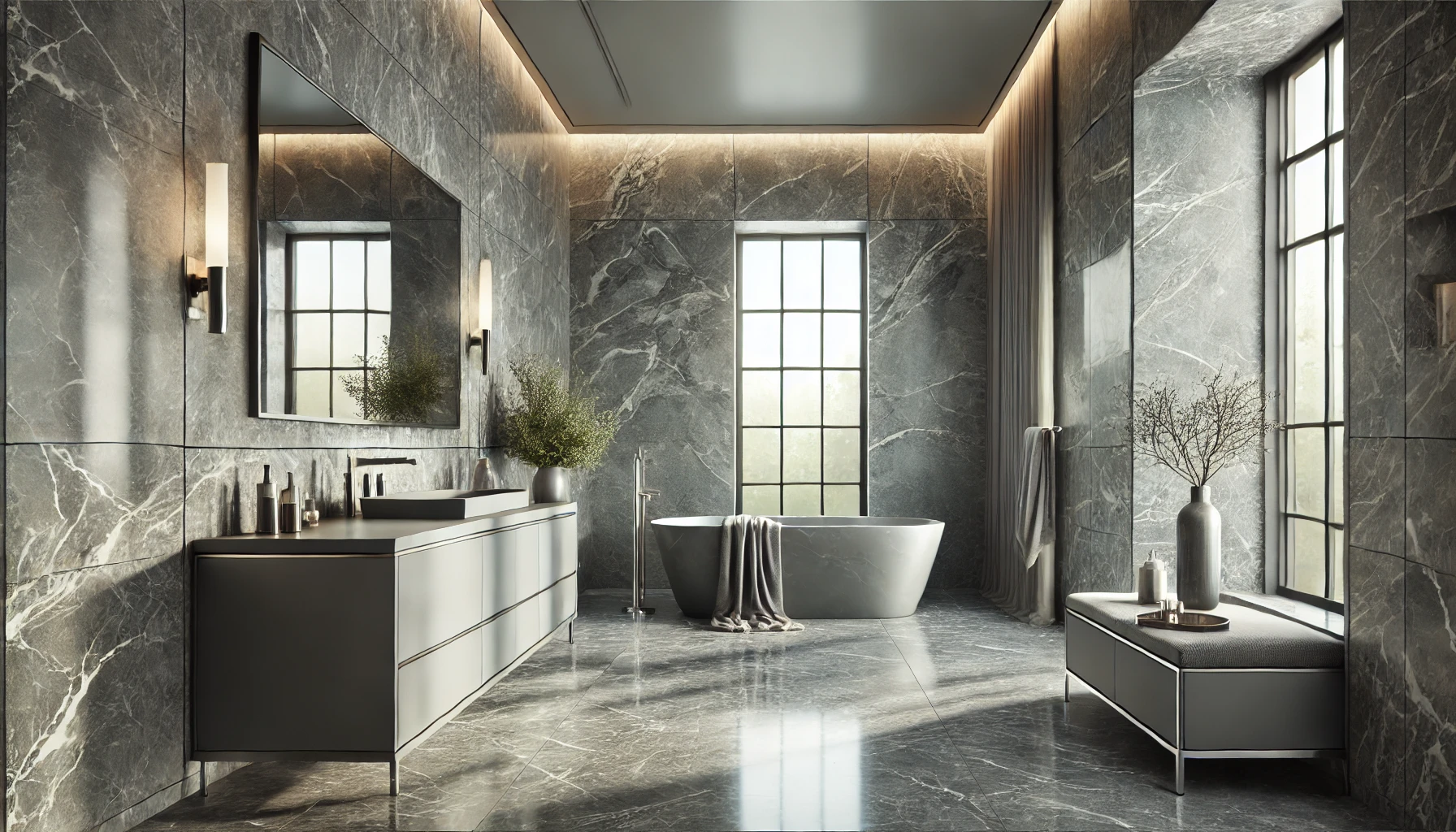 The timeless aesthetic of Grigio Carnico and its neutral gray palette allow it to be combined with materials like wood or metal, creating harmonious and refined spaces.