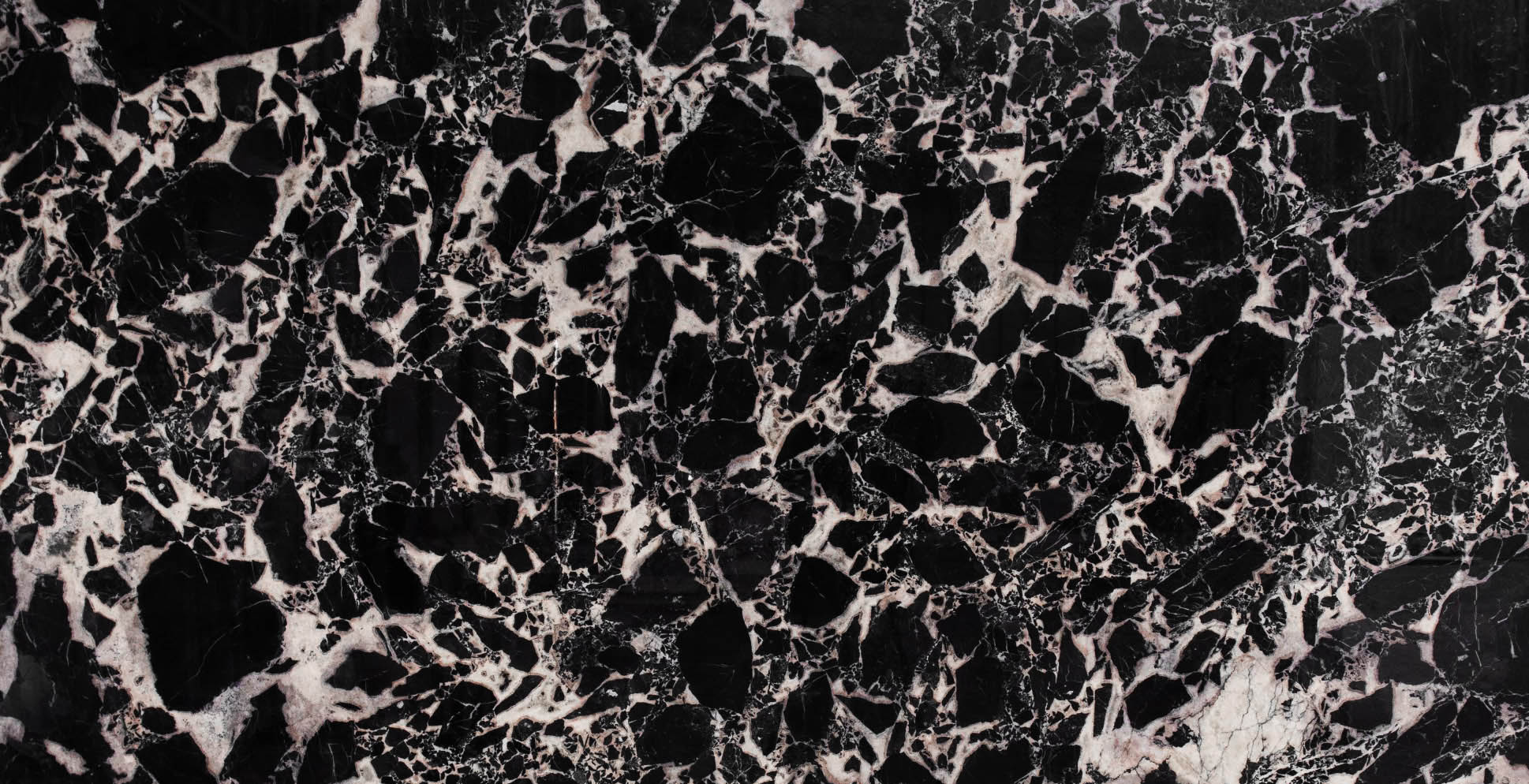 Noir Grand Antique marble is distinguished by its striking deep black background, intersected by irregular white veins that create a spectacular visual pattern. This high-contrast combination results in an intense and sophisticated aesthetic, perfect for spaces seeking to stand out with elegance and uniqueness.