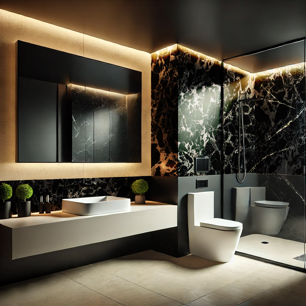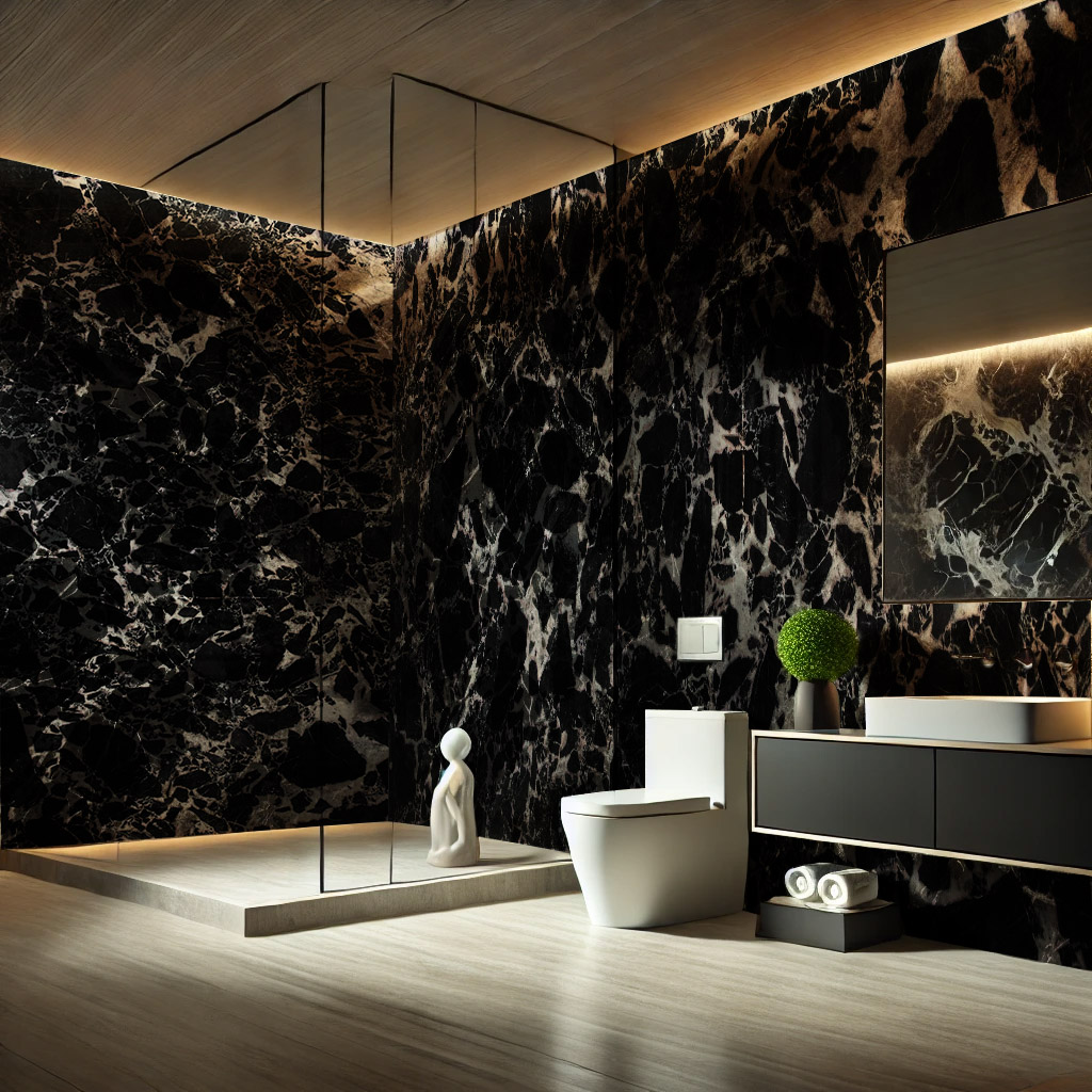 Historically used in monuments and palaces, Noir Grand Antique remains a premium choice for luxury projects. Its imposing appearance and striking contrasts make each piece unique, bringing an unmatched character to any space. It is ideal for environments aiming for an impactful aesthetic, such as high-end hotels, luxury boutiques, and private residences.